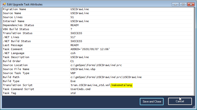 TScript | Translation script template name. Optionally the Tscript value may be of the form template/option where option is gmBasic command line options and/or special processing options. The special processing options are :