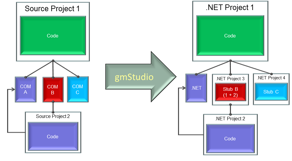 Section titled “Going to the Next Level”The main purpose of the Standard Upgrade to generate initial translations and the COM Stub Framework projects and assemblies that set the a solid foundation for adding Custom Upgrade features such as Custom COM Replacement , dead code cleanup, integrating new code, etc. There are many types of potential Custom Upgrade requirements and many different ways to implement them with the help of gmStudio. See this article for a discussion of Scoping and Planning a Custom Upgradeand See our Upgrade Samples for examples of how custom upgrades may be implemented using gmStudio. Please feel free to contact us to discuss your specific requirements.