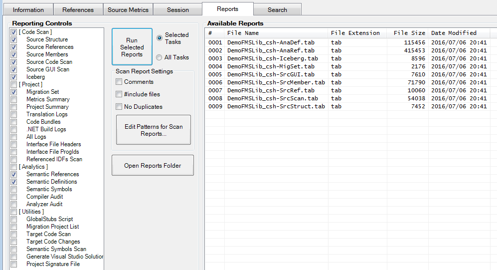 - COM Refs indicates that the interface description files referenced by the selected tasks will be searched.